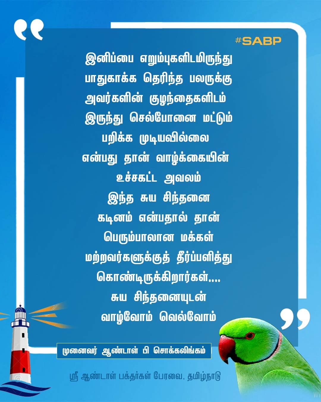 July 16 2023 0CommentSABP Posted by Vastu_Shastram In motivation SABPShare this: Tags: #motivationalspeaker, AndalpChockalingam, AndalVastu, DrAndalPChockalingam, Life, lifechallenge, lifechanging, lifestyle, lifetips, MoneyTips, MotivationalArticle, Motivationalspeech, SABP, SriAandalVastu, successful, Thesecret, thoughts, thoughtsoftheday, tipsforlife Share: