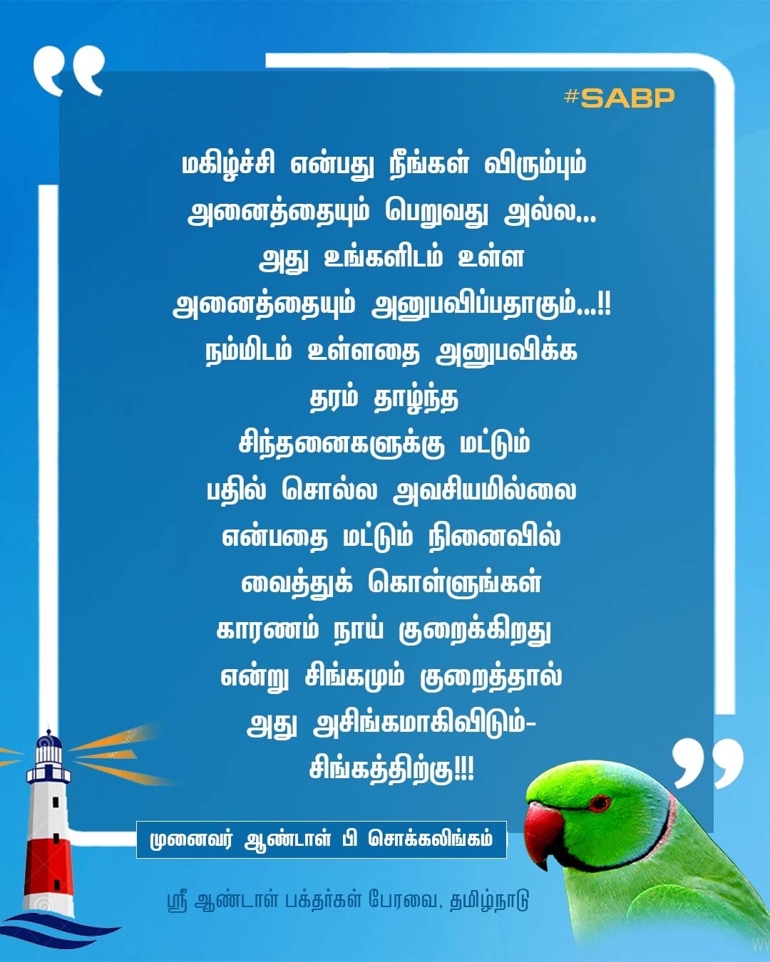 December 09 2023 0CommentSABP Posted by Vastu_Shastram In motivation SABPShare this: Tags: #motivationalspeaker, AndalpChockalingam, DrAndalPChockalingam, Life, lifechallenge, lifechanging, lifestyle, lifetips, MoneyTips, Motivation, Motivation2023, MotivationalArticle, Motivationalspeech, Motivationoctober, Motivationtamil, SABP, successful, Thesecret, thoughts, thoughtsoftheday, tipsforlife Share: