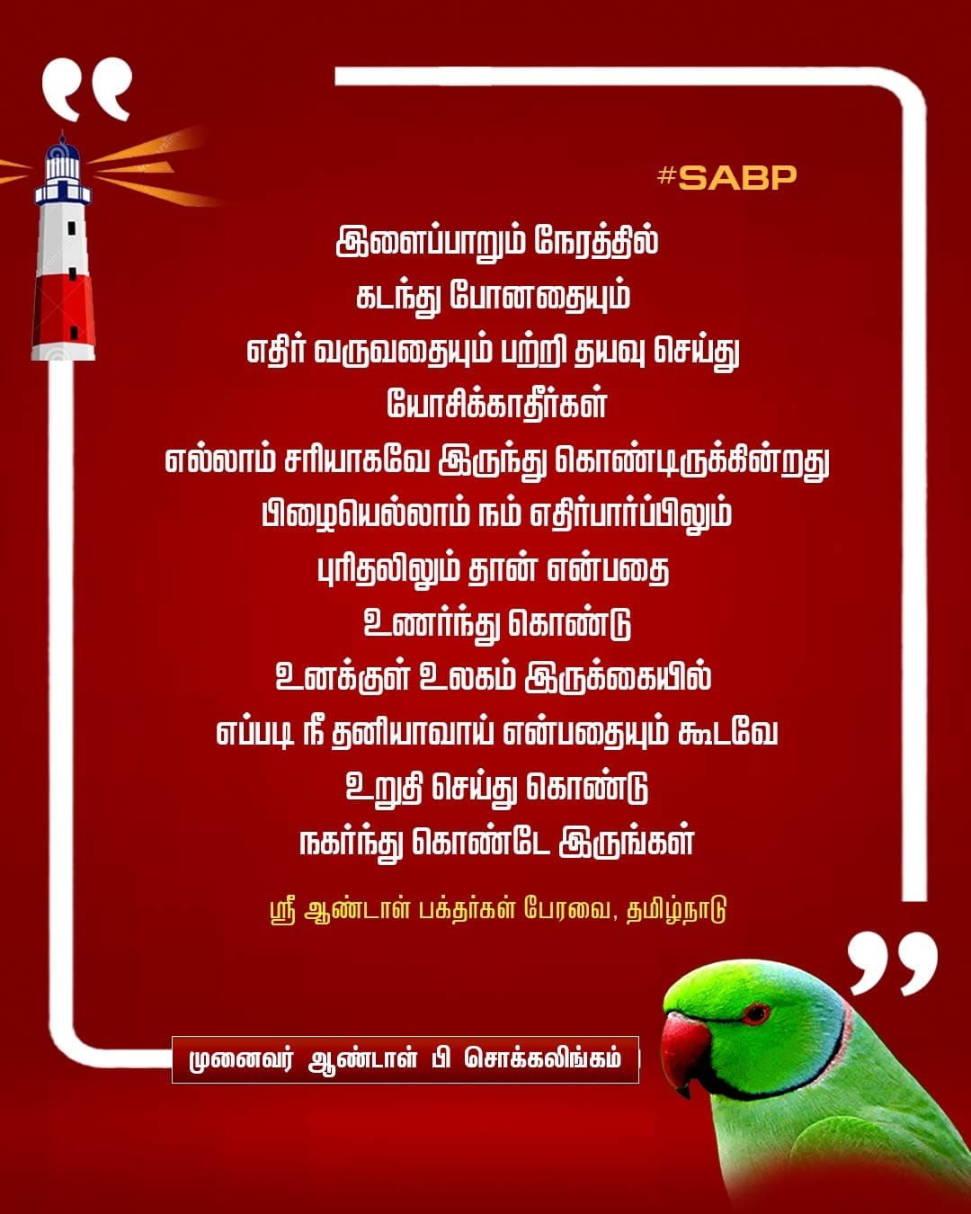 February 16 2024 0CommentSABP Posted by Vastu_Shastram In motivation SABPShare this: Tags: #motivationalspeaker, AndalpChockalingam, DrAndalPChockalingam, Life, lifechallenge, lifechanging, lifestyle, lifetips, MoneyTips, Motivation, Motivation2024, MotivationalArticle, Motivationalspeech, Motivationoctober, Motivationtamil, SABP, successful, Thesecret, thoughts, thoughtsoftheday, tipsforlife Share: