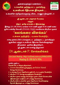 இந்நிகழ்ச்சியை தவறவிடாமல் வீட்டில் இருந்தப்படியே ஜூம் செயலி (Zoom App) வாயிலாக வீடியோ மூலம் கலந்து கொண்டு பயன் பெறுங்கள்.